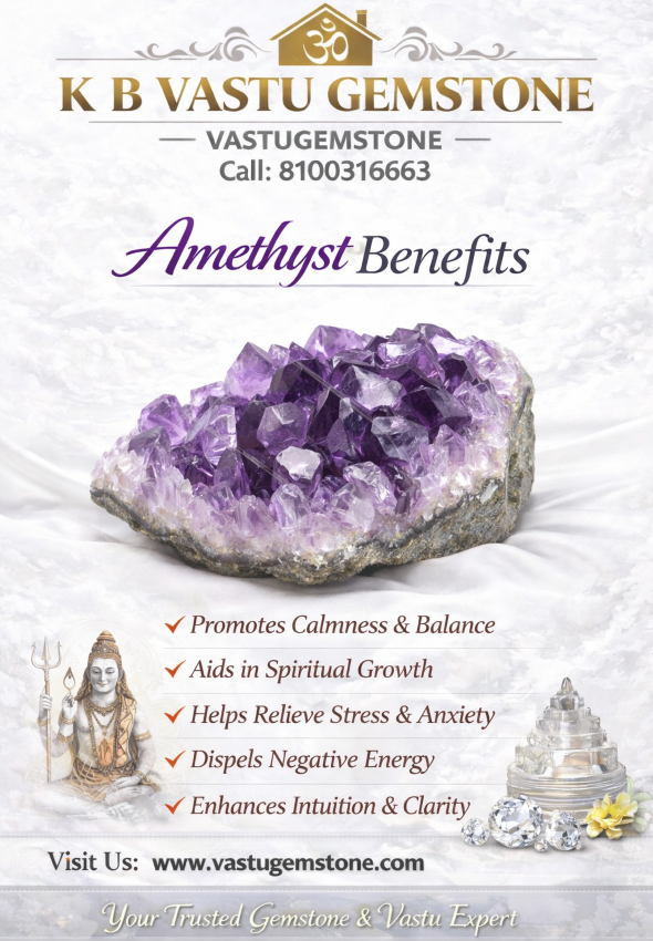#KBVastuGemstone #AmethystStone #NaturalAmethyst #PeaceStone #SpiritualHealing #StressReliefStone #HealingCrystals #VastuGemstone #AstrologyProducts #PositiveEnergy #MeditationStone #EmotionalBalance