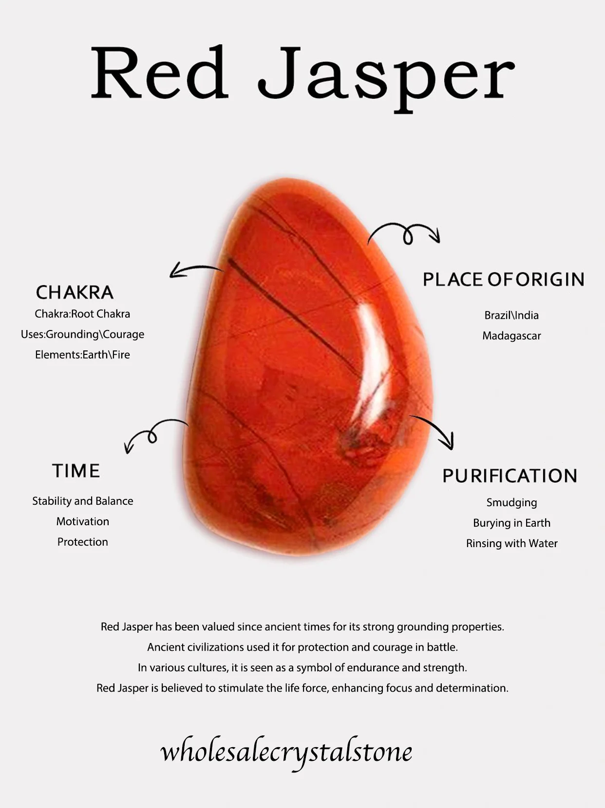 Promotes Strength & Emotional Stability: Red Jasper helps stabilize emotions, reduce fear, and build inner strength.